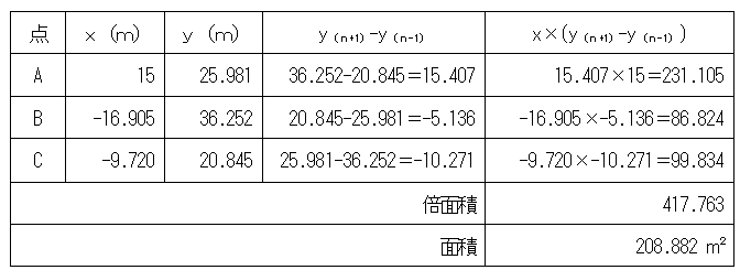 ② 各座標値を基に三角形の土地の面積を計算する